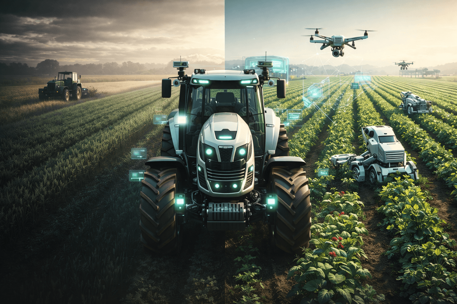 Коптеры сканируют поля с воздуха, обнаруживая проблему по спектральным изображениям еще до того, как угроза видна человеку. Автономные комбайны собирают кормовые, зерновые и зернобобовые урожаи. Пока еще редко, но роботы уже собирают также овощи, фрукты и ягоды, определяя их спелость по цвету, размеру и текстуре.