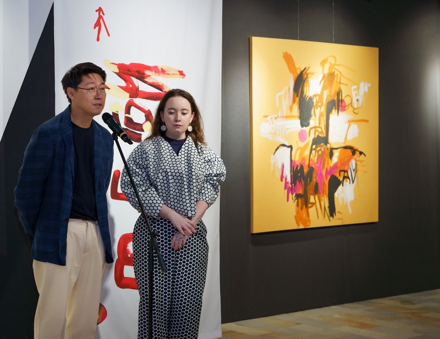 Название выставки отсылает к надписи на одной из работ художницы «Га га гой». Это набор звуков, который не подчиняется привычной логике языка и не доступен для перевода. Именно так вместо поиска рациональности проект предлагает опыт доязыкового восприятия (pre-verbal perception), в котором образ сначала ощущается и проживается, а уже потом осмысляется. В этом режиме цвет, ритм и напряжение линий становятся первичными инструментами коммуникации, вызывая у зрителя интуитивный и эмоциональный резонанс.