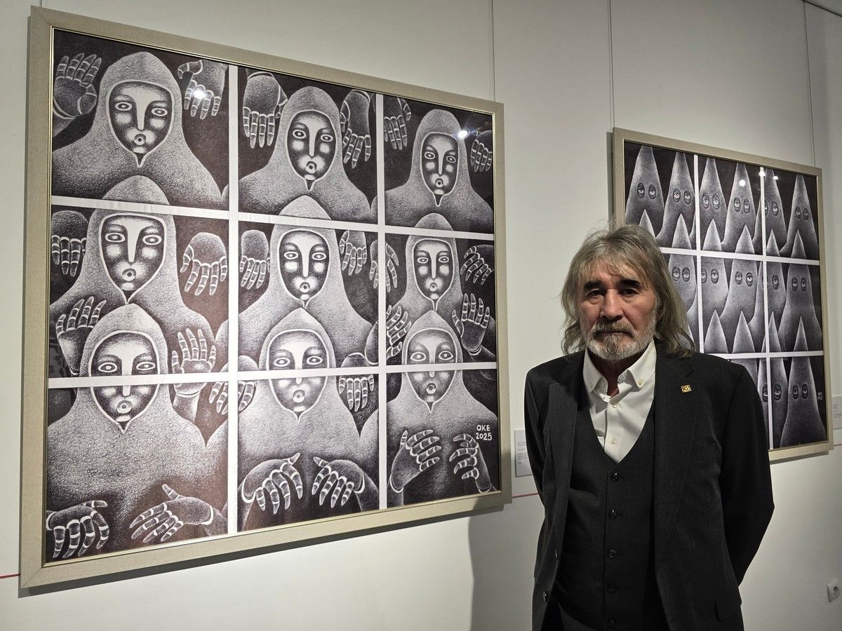 В Центральном выставочном зале Национального музея искусств имени Абылхана Кастеева открылась экспозиция Оразбека Есенбаева «Дихотомия». В ней около 30 новых графических работ, выполненных чернилами на атласе. В напряженном ритме линий и контрасте черного и белого художник фиксирует состояние мира, в котором кризис становится нормой, а личный опыт — частью общей нестабильности.